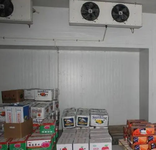 冷庫內配備的是2臺浙江凱迪系列高效強風型冷風機,該風機運行穩定噪音小,送風距離遠,使得庫內降溫速度快,極大增強了化霜效果,增加快速對流循環,從而達到每個角落的溫度均勻性。